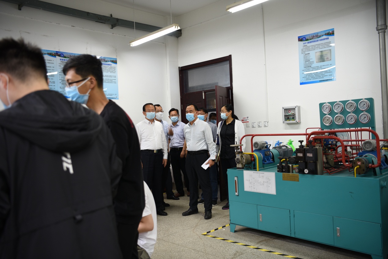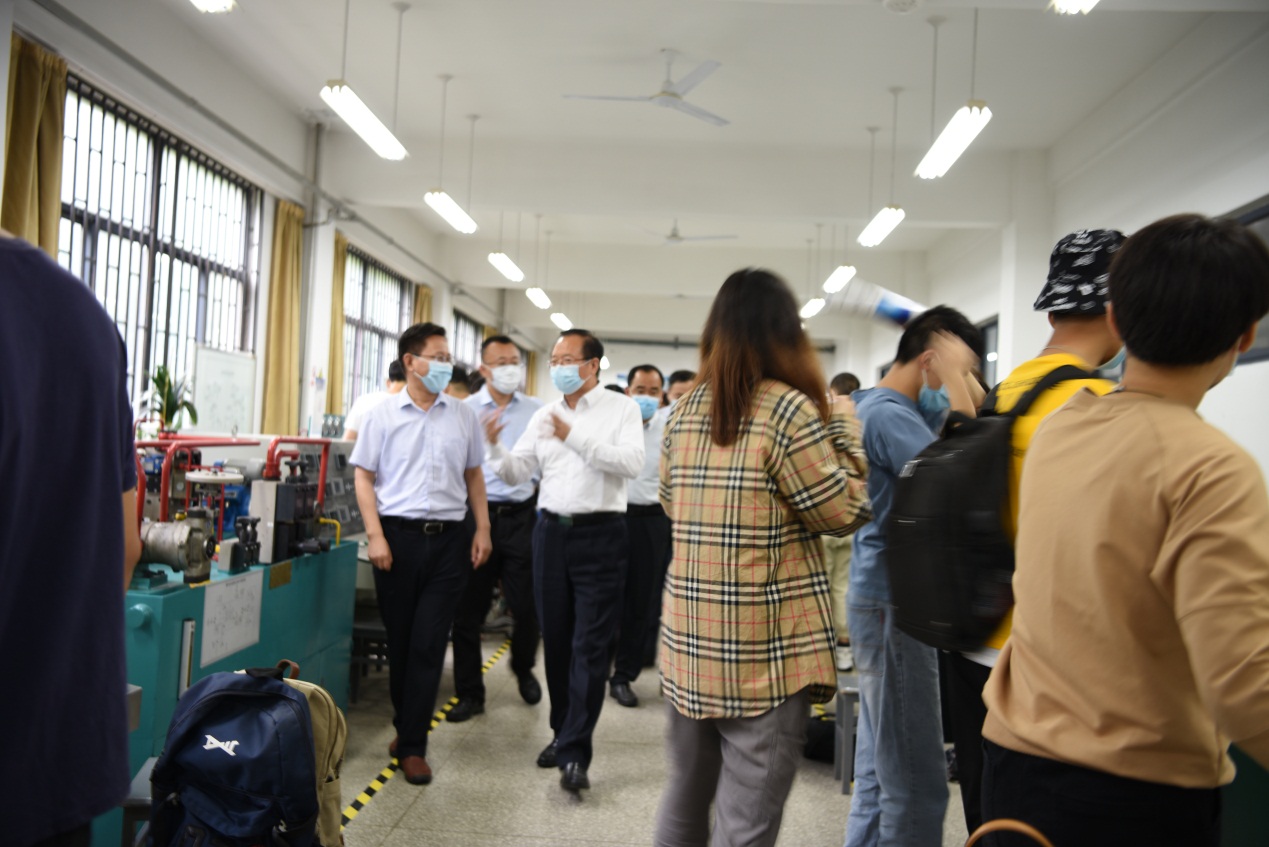 点击:6月10日,公司党委书记罗公利、副董事长曾庆田到公司调研考察员工复学复课情况。公司党委办公室主任徐方全、教务处处长乔卫国、实验室与设备管理处处长李春晖等一同调研考察。