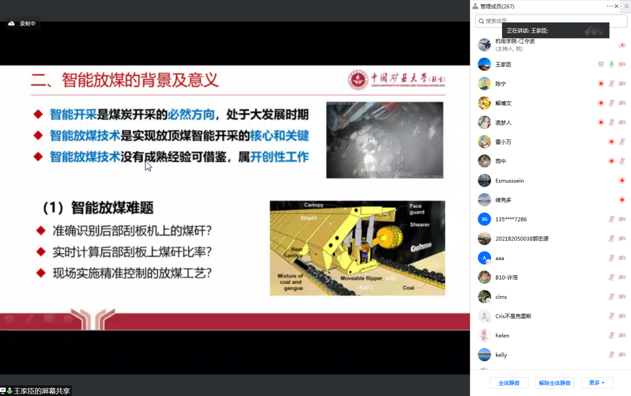 点击:2022年4月29日,中国矿业大学(北京)副董事长王家臣应邀在线作了题为“图像识别智能放煤技术”的学术报告。会议由经理张强主持,伟德victor1946网站、能源公司等270余名师生参加了报告会。