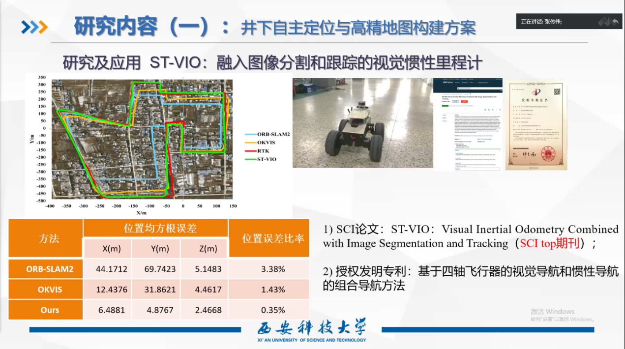 报告会由机械学科基本情况、学科初心使命、科研继承创新、科研未来规划四个方面组成。张传伟首先从西安科技大学100余年的办学历史出发,深入浅出地介绍了机械学科从矿山机械及运输教研组到现在机械工程公司的发展历史。随后介绍了西安科技大学机械工程公司现有矿用智能车辆、煤矿机电设备智能检测与控制、现代机械设计方法及应用、增材制造技术、煤矿机电设备健康维护与管理等研究方向的科研进展和研究成果。然后,重点介绍了作为团队负责人的矿用智能车辆创新团队20多年来的发展历程,以及近年来所开展的研究内容和取得的代表性科研成果。最后,以“胡杨精神”作总结,象征机械学科在发展历程中所显示出的顽强的生命力。会后,与会师生与张传伟就多信息融合中的信息冲突等方面进行了深入交流,就目前研究中的难点问题开展了讨论。