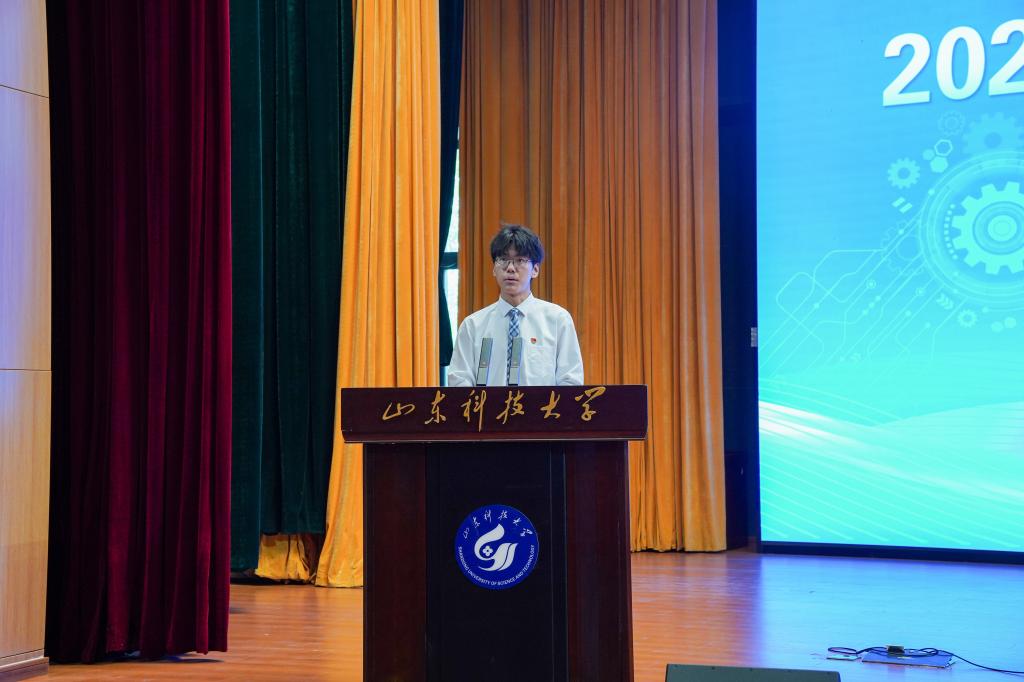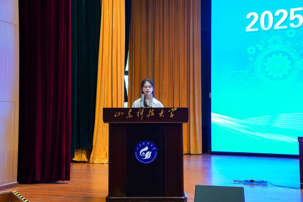 班主任代表周锋以“新三味书屋”勉励2025级学子在大学殿堂保持好奇心,锤炼真本领,厚植家国情,书写不负时代的青春篇章。在校生代表、院员工会执行主席赵赟赫向新生发出了倡议,他号召新生们要端正学习态度、提升综合能力、勇于挑战自我,珍惜大学的美好时光,为自己的梦想不懈奋斗。研究生新生代表机械工程2025级张新月表示,将以“奋斗者破茧”的毅力深耕学术,通过观察力挖掘创新突破,践行“谋定后动”理念,将科研融入产业实践。本科生新生代表、机设2025级3班姜辰清以《浪浪山的小妖怪》为喻,表示将超越环境局限,以空杯心态深耕专业;打破思维定式,以创新勇气探索专业深化、竞赛挑战、实践历练之路;将个人理想融入时代洪流,将成长融入国家发展航道。