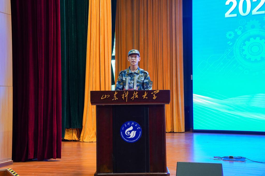 军训动员大会上,刘梅月从军训的意义、纪律的要求、内务的标准三个方面向全体本科生新生提出希望和要求。她勉励新生以汗水铸就坚韧,在迷彩方阵中淬炼机电人的责任担当,用军训成果滋养科技报国之志。