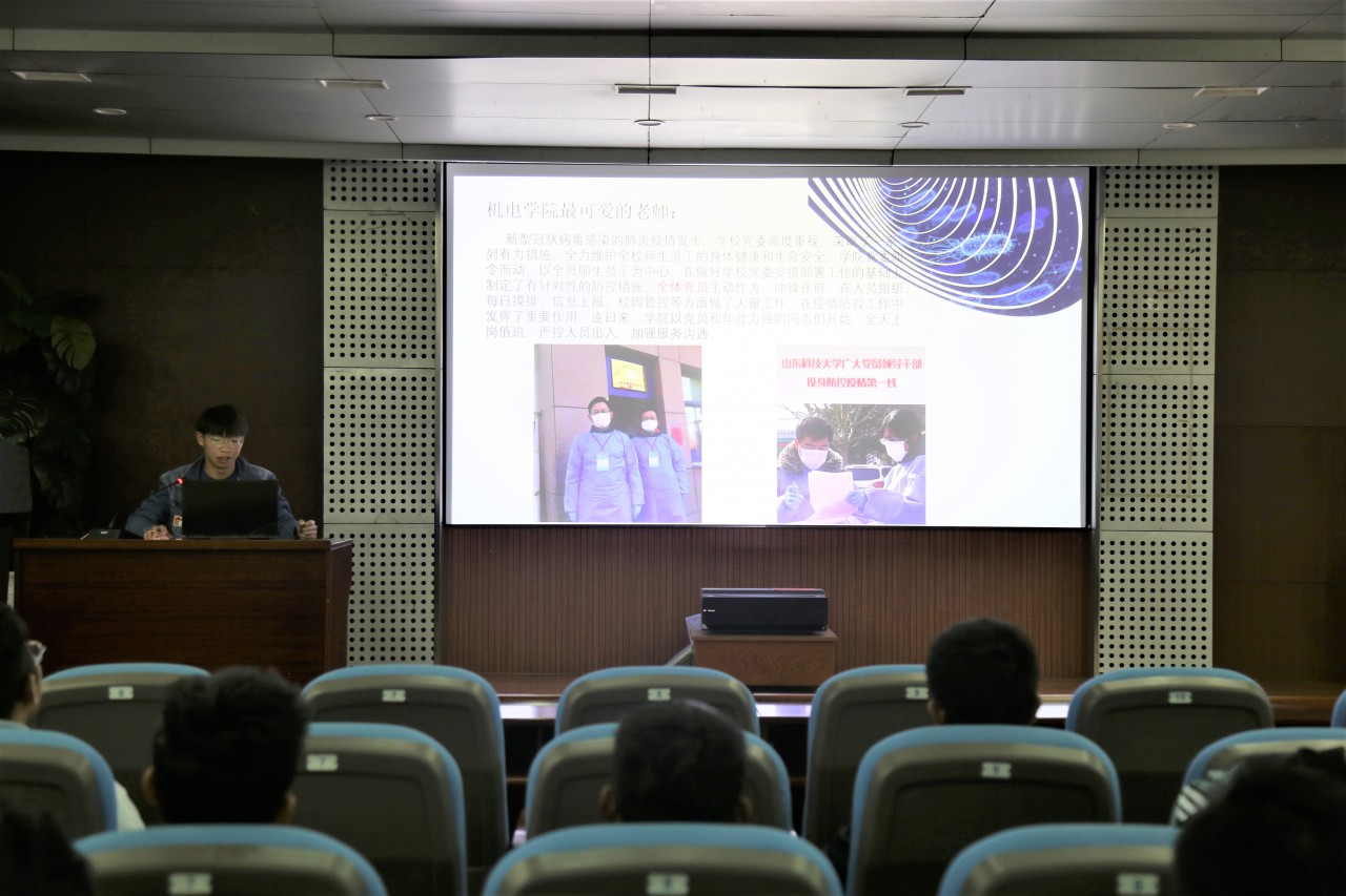 王正江介绍了伟德victor1946网站师生在疫情期间为公司、社区疫情防控进行的各项工作,特别讲述了机电学子在疫情期间积极参加各项志愿服务活动的优秀事迹,通过分享自身暑假时间到临沂市蒙阴县参加了“三下乡”社会实践活动,采访当地公安机关、社区网格化工作人员的所闻所感,向与会同学呈现了青年学子在疫情当中不畏艰险、共克时艰的精神。