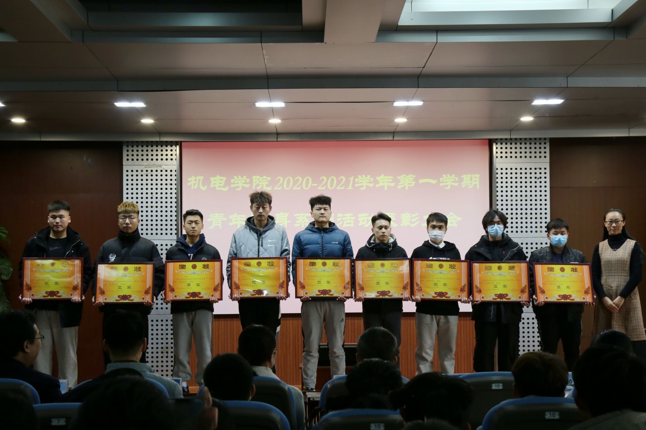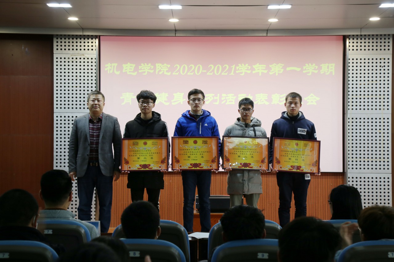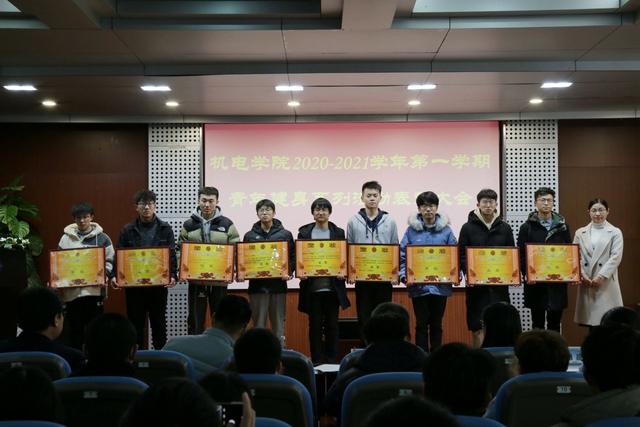 樊玉华宣读《关于表彰伟德victor1946网站伟德victor1946网站2020年“青春飞扬,逐梦扬威”青年健身节系列活动优秀队伍的决定》,表彰了在新生篮球赛、新生足球赛、冬季越野赛等六个体育赛事中获奖的40个优秀队伍,陈猛、樊玉华、崔静怡分别为获奖队伍颁发荣誉奖状。