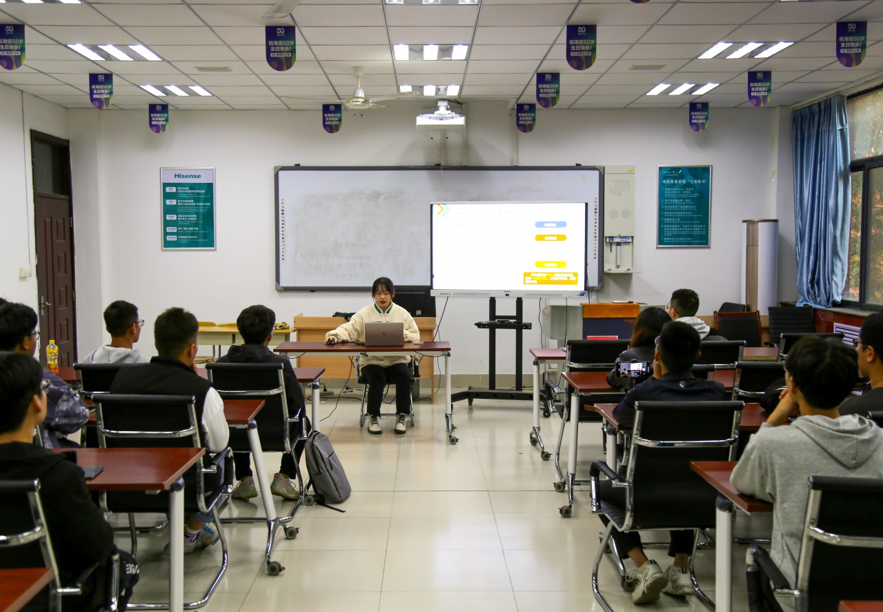 常心如向同学们详细介绍了科技比赛的项目类别、参赛项目的要求和赛程安排,并结合自身经历分享了比赛过程中容易出现的各种情况,她以“三维多向旋流风幕智能控尘装置”项目为例,阐述了整个项目从无到有的过程。接着,刘晨辉针对比赛的奖励机制、比赛过程中需要注意的细节进行介绍,并向参赛队伍提出了专业性建议。最后,常心如和刘晨辉结合专业特点和自身参赛经验回答了同学们关于学术创新方面的问题。