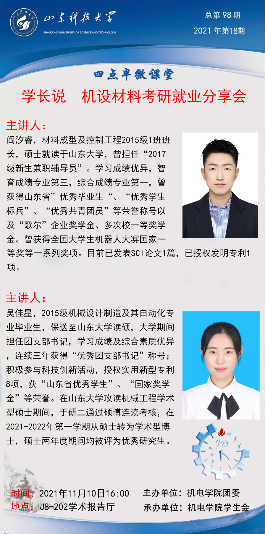 本次分享会加深了同学们对考研和就业的认识,为2022届毕业生提供有效建议,有助于同学们明确目标、确定方向,更好地选择、规划、安排未来发展道路。(通讯员:孙润泽 摄影:田忌云)