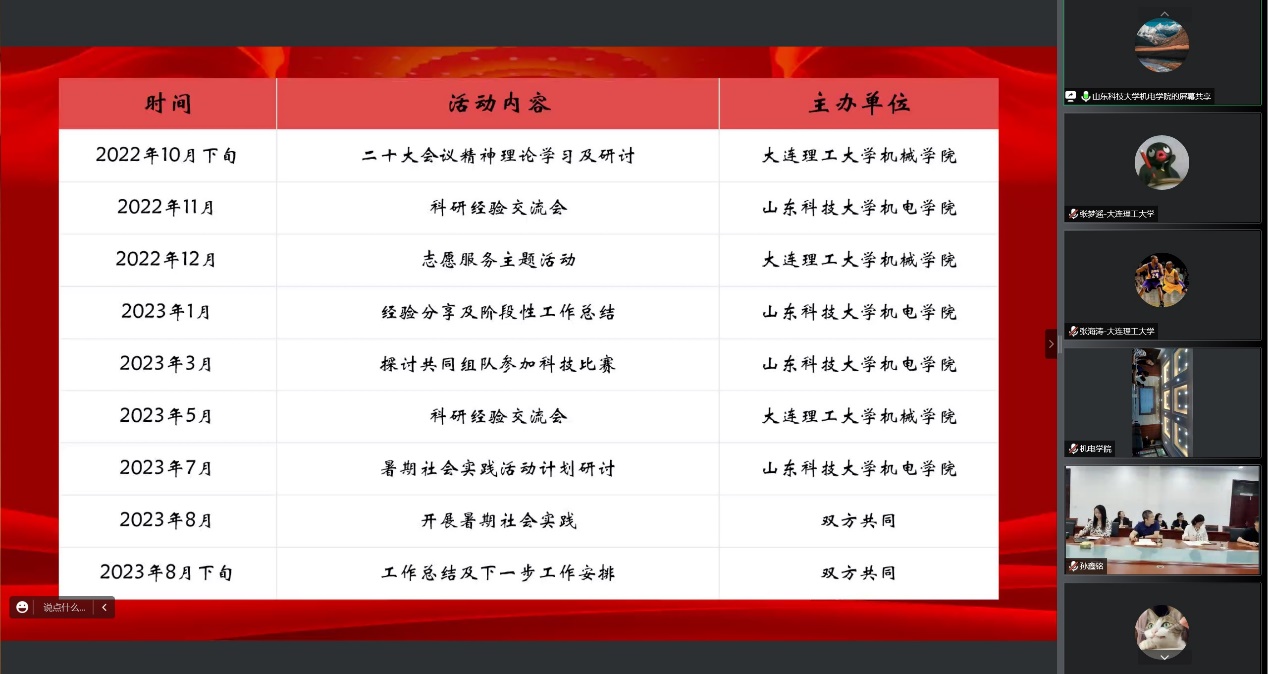活动中,双方支部从“理论共学、科研共创、志愿共行”三个方面对后续建设规划进行探讨,明确联建工作任务书、责任人、时间表、路线图。
